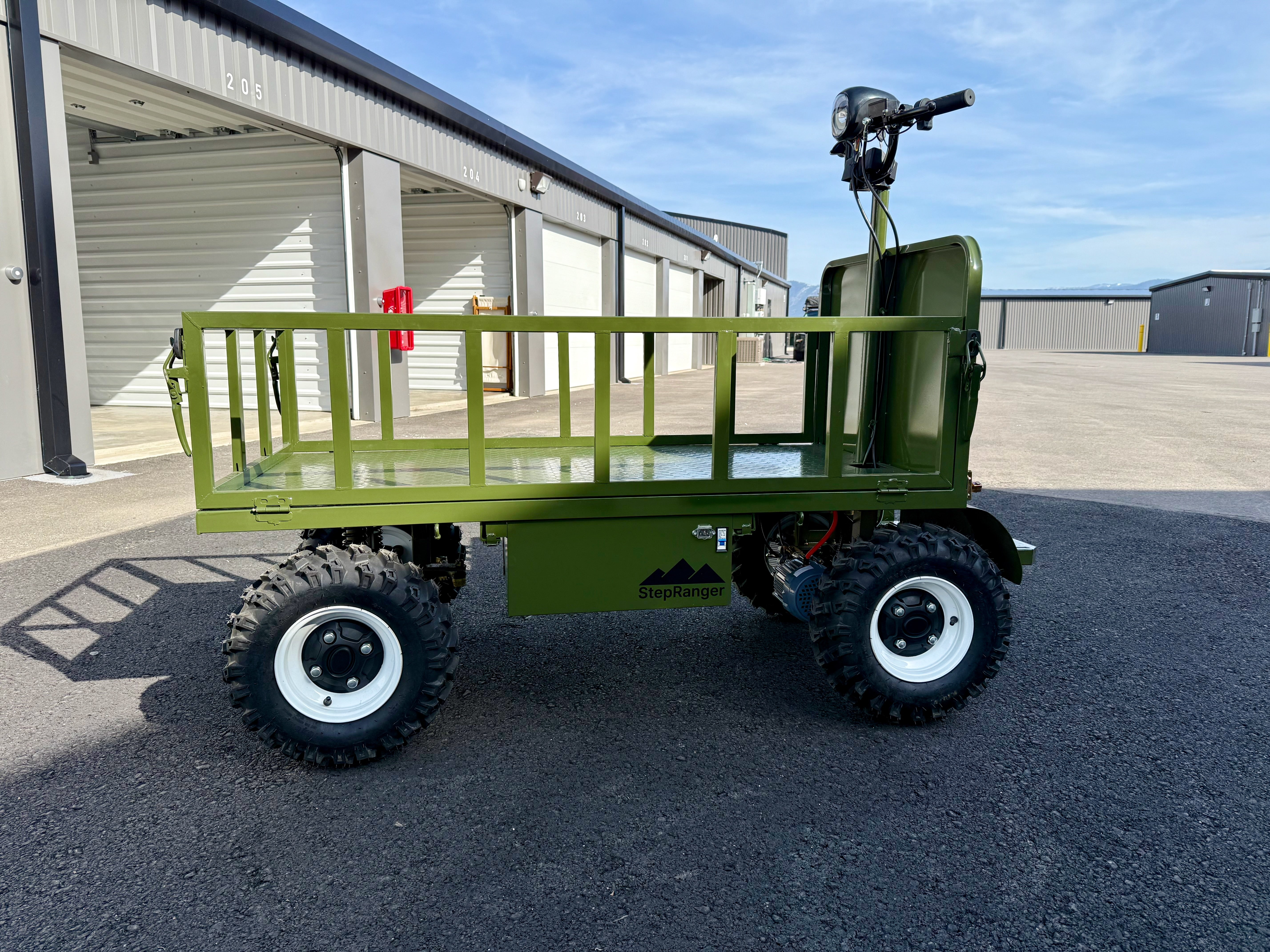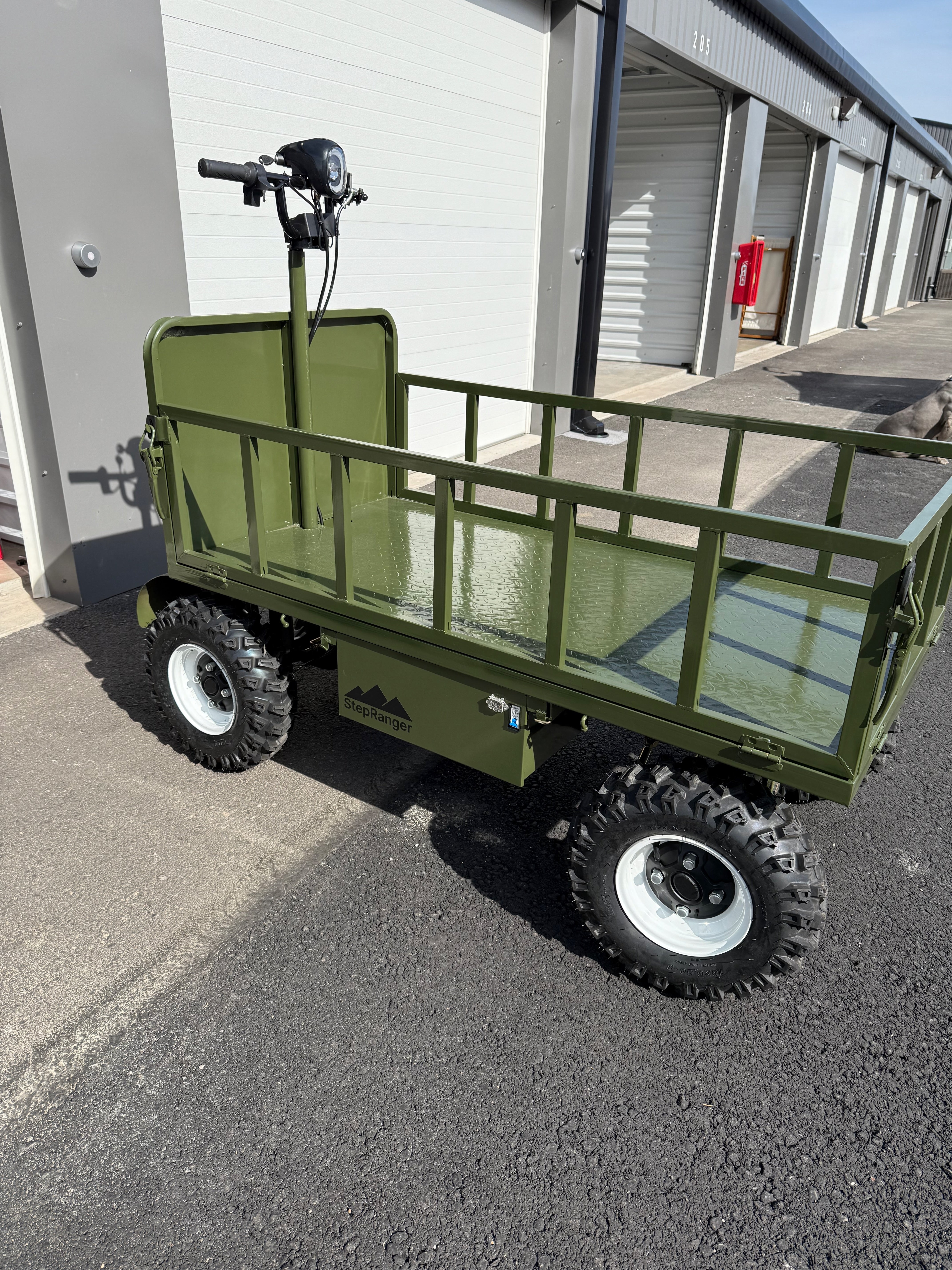 Quiet, efficient, and effortlessly powerful. The StepRanger’s robust 1000W motor and 48V battery give you a reliable 17-mile range, easily hauling up to 1,000 lbs. Perfect for ranch chores, landscaping projects, hunting trips, or just moving gear around your property.